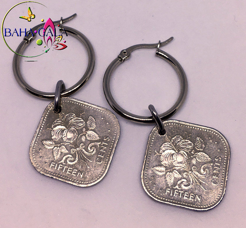 Authentic Bahamian Coins Stainless Steel Hoop Earring.