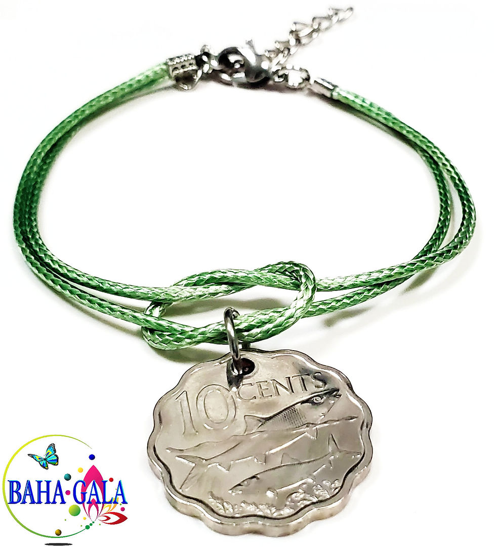Authentic Bahamian $0.15 Cent Coin "Halo Heart" Adjustable Bangle.
